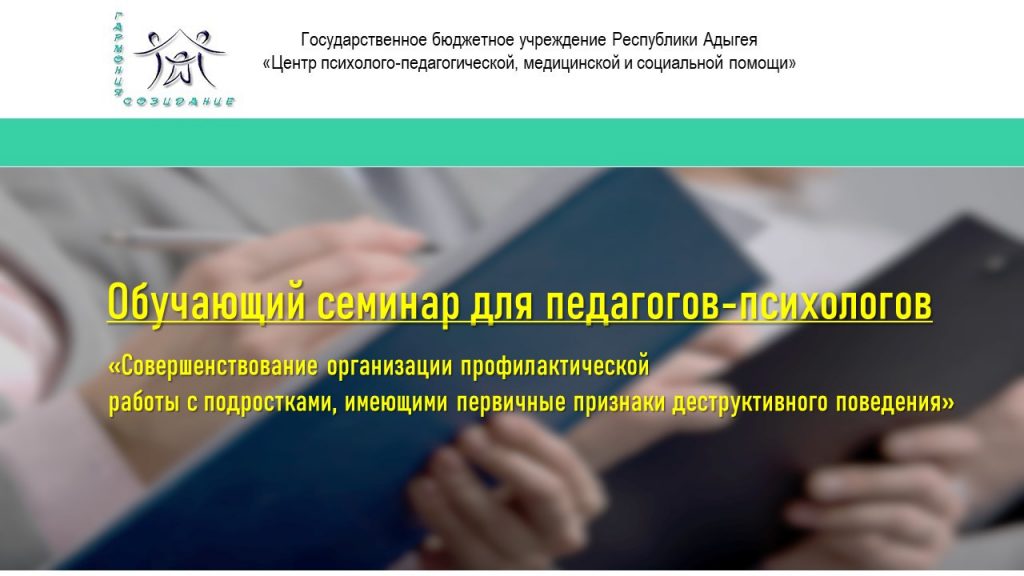 27 августа ГБУ РА «Центр диагностики и консультирования» проведен обучающий семинар для педагогов-психологов общеобразовательных организаций Республики Адыгея «Совершенствование организации профилактической работы с подростками, имеющими первичные признаки деструктивного поведения».